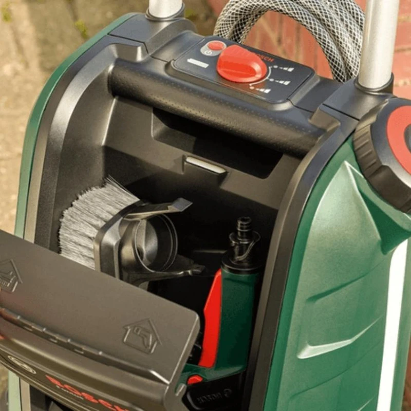 Idéal pour le nettoyage des voitures, motos, équipements extérieurs et des vélos, le nettoyeur sans-fil de Bosch peut être utilisé à domicile, raccordé à un robinet d’eau, ou en usage nomade grâce au réservoir intégré de 15 L.