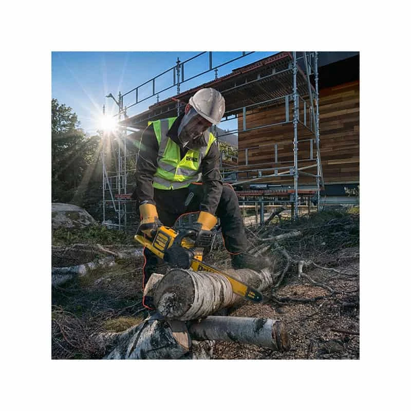 Avec la lame Oregon de 40 cm, la tronçonneuse sans fil Dewalt DCM 575 XR FLEXVOLT fournit d’excellentes prestations de coupe. Idéale pour des opérations générales d’abattage et de bûcheronnage, des travaux d’élagage, du façonnage classique une fois l’arbre à terre.